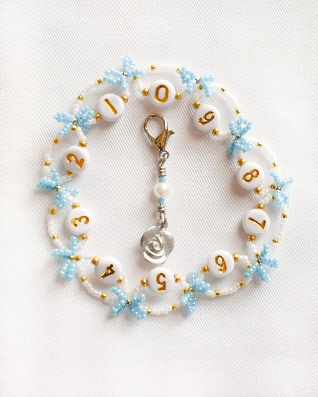 【Ribbon Collection】row counter 〈Light Blue Ribbon × White〉