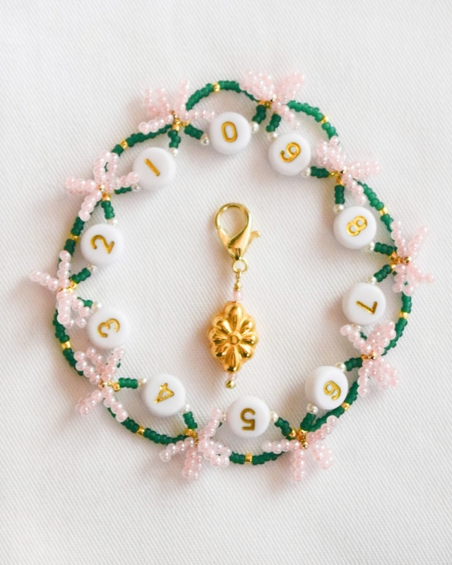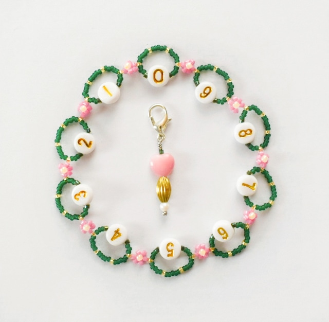 【Ribbon Collection】Row Counter〈Pink Ribbon × Green〉