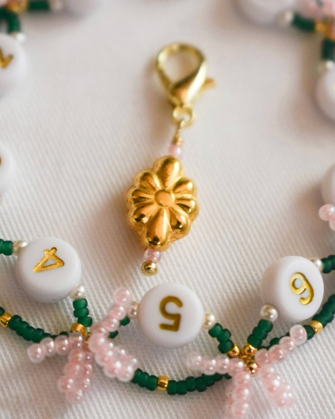 【Ribbon Collection】Row Counter〈Pink Ribbon × Green〉