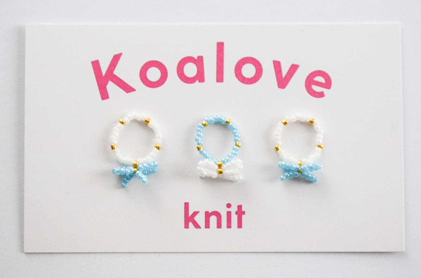 【Ribbon Collection】Stitch Markers〈White × Light Blue〉